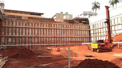 Neste projeto adotaram a tecnologia de projeto de execução em fundações da Fundex Fundações. Contenções em estacas com tirantes monobarra protendidos.